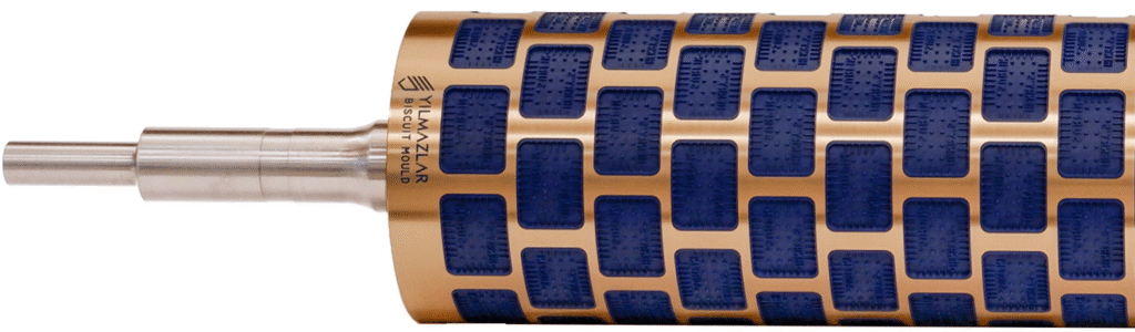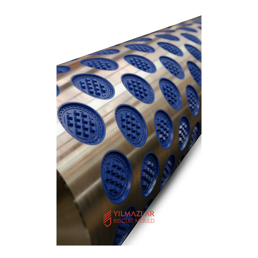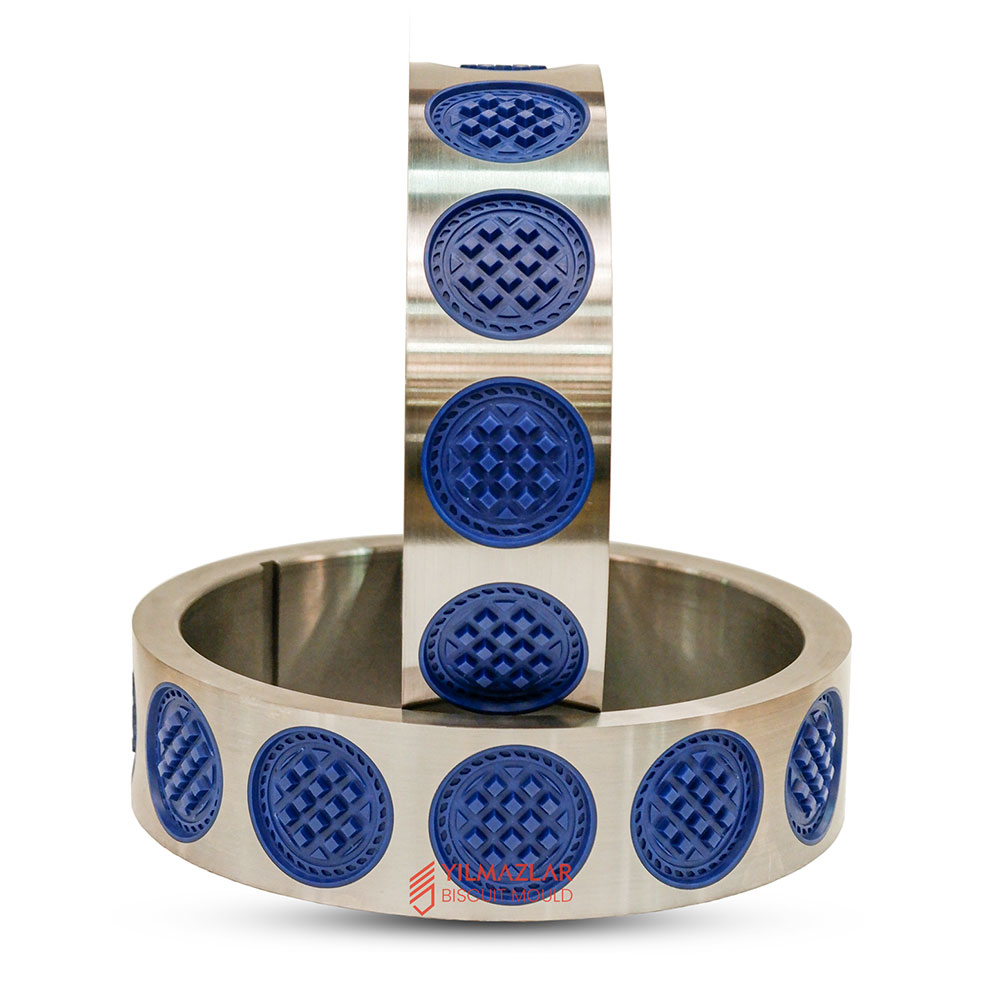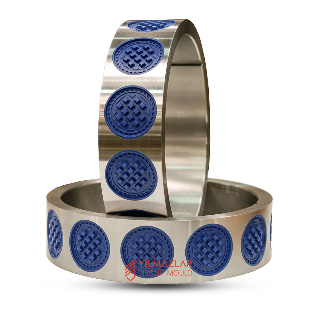 The rotating biscuit moulds are designed with bronze rings, steel rings or plastic rings mounted on a steel cylinder. The rotating biscuit moulds with interchangeable rings allow us to replace the rings easily when needed.
